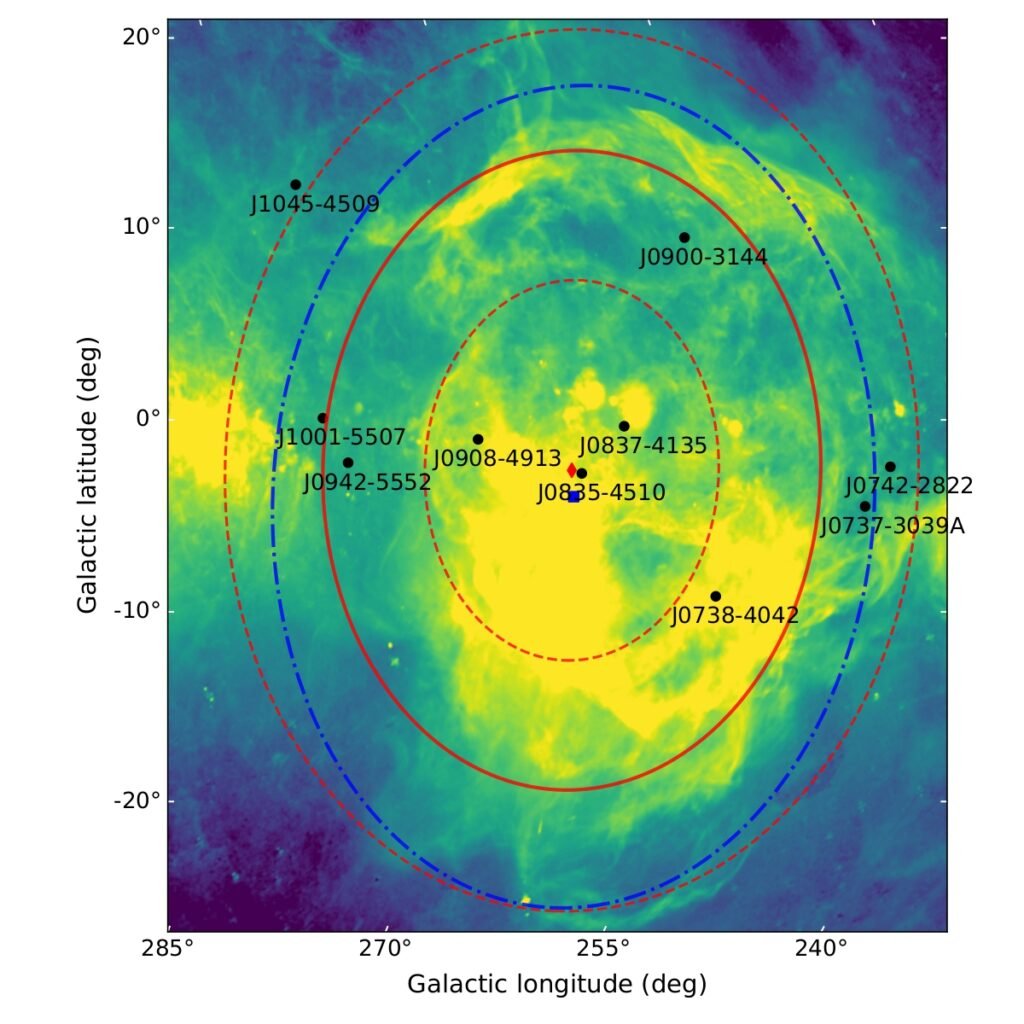 Kanpur, February 25, 2026: Astrophysicists from the Department of Physics and SPASE (Space, Planetary & Astronomical Sciences and Engineering) at the Indian Institute of Technology Kanpur and the National Centre for Radio Astrophysics Pune have developed a novel and powerful method to estimate distances to stars that emit periodic radio flashes, such as pulsars. The work is reported in a recent paper titled “Probing the morphology of the Gum Nebula using pulsar observables and a novel distance estimation method,” published in the Monthly Notices of the Royal Astronomical Society (MNRAS) by Oxford University Press. The study was carried out by Dr. Ashish Kumar (now at NCRA Pune), Prof. Avinash A. Deshpande (ex. RRI Bengaluru), and Prof. Pankaj Jain (IIT Kanpur).