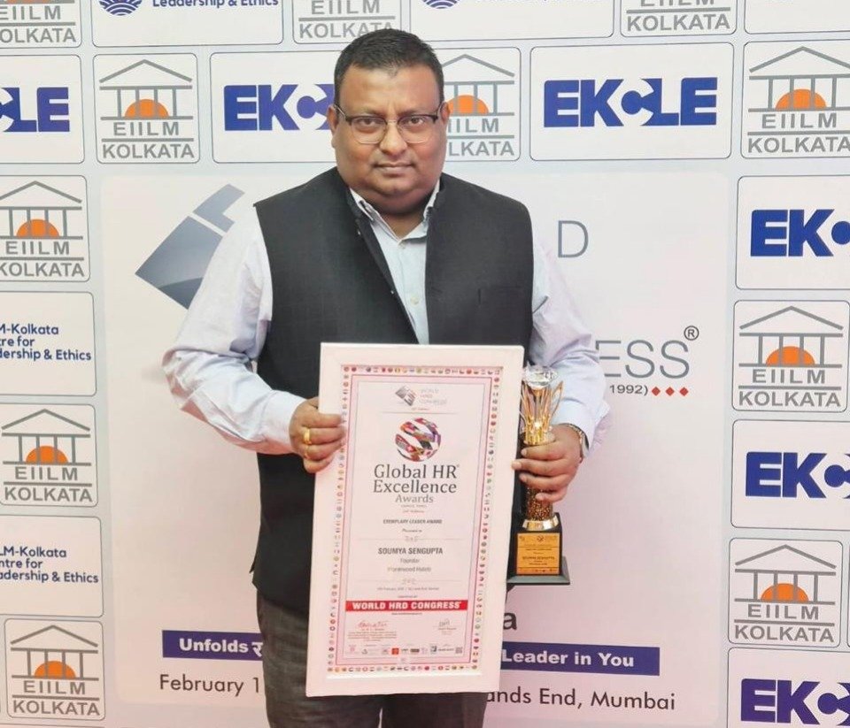 Kolkata, March 19, 2026 : Soumya Sengupta Founder of Wormwoods Hotels was honored with the Exemplary Leader Award at the Global Excellence HR Awards hosted by EIILM-Kolkata.